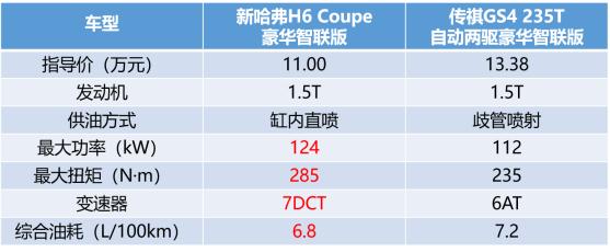 新H6 Coupe和传祺GS4都搭载了1.5T涡轮增压发动机,但参数还是有较大的差距。新H6 Coupe搭载的是1.5GDIT直喷增压发动机,不仅最大功率、最大扭矩都更高,而综合油耗却更低,可谓“力气大还吃得少”。