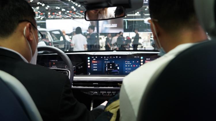 内饰方面相比在售车型发生了较大的改变,主要变化来自中控屏,新车中控屏不再使用悬浮 式设计,而是将屏幕嵌入在中控台前方,其中,液晶仪表盘的尺寸为12.3英寸,从中控一直连接到副驾的屏幕则为27英寸。不仅如此,为了便于驾驶时提供即时信息,该车还将配备HUD抬头显示,行车时无需再低头看屏幕了。