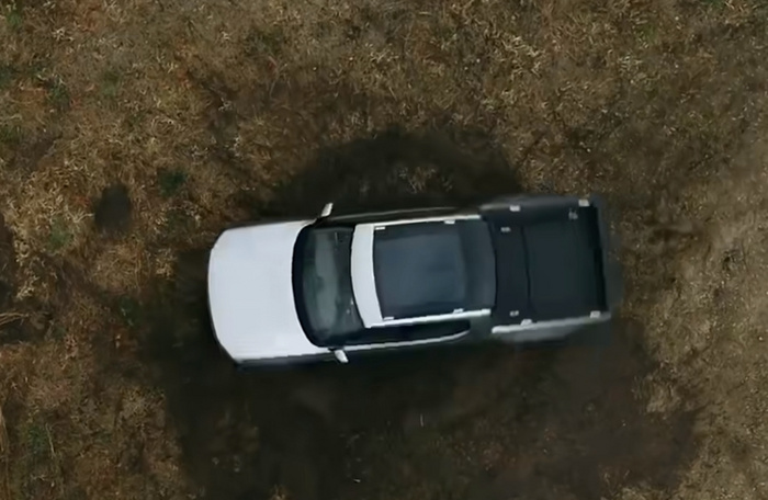 这件事不难,因为其他品牌也做到过。难点在高附着路面上,不单纯靠动力凹出一个圆,而是在尽量减少轮胎损耗的情况下完成掉头。这就是为什么哪怕在广告这个展示肌肉的场景中,Rivian R1T也只敢在砂石路面这种低附着的地方演示的原因。