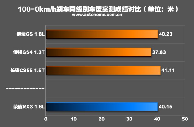 ■ 荣威RX3 1.6L加速/制动测试成绩