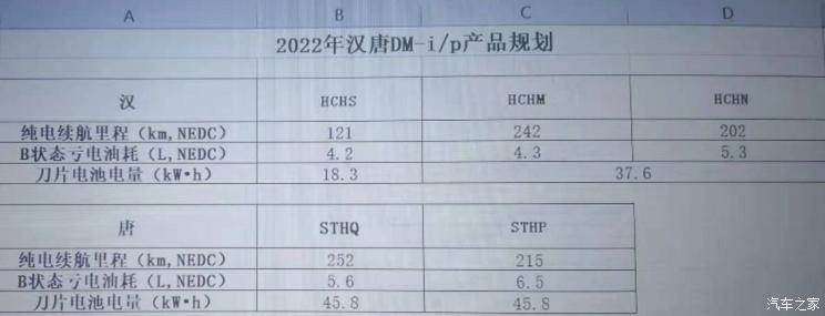 [本站 资讯] 日前,我们从相关渠道获取到比亚迪汉DM-i和唐DM-i车型的进一步信息,两款产品纯电续航里程最高分别为242公里和252公里,均将于2022年上半年推出。其中唐DM-i的大电池长续航版本和四驱版本价格预计覆盖19-33万元区间。
