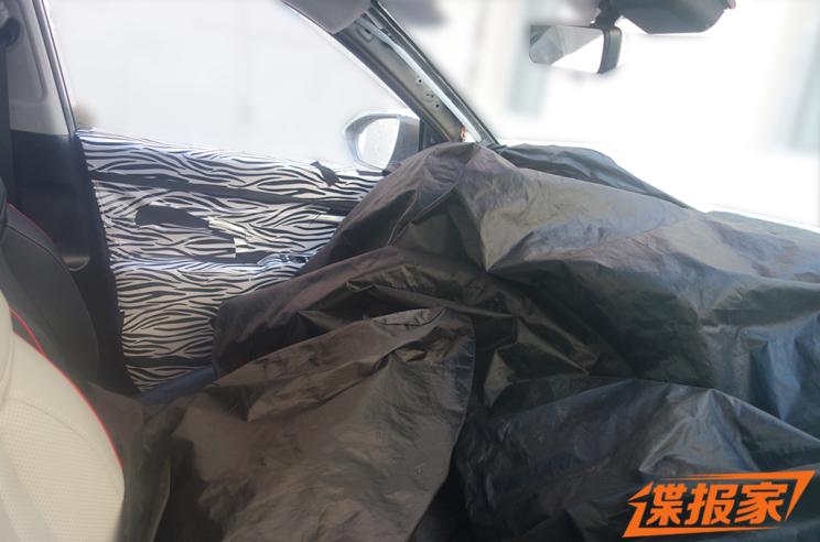 内饰方面,新车包裹的伪装比较重,我们无法窥得过多的细节,但从图片能看出新车的座椅采用黑/白色皮革材质拼接,还带有红色缝线,显得比较居家实用。