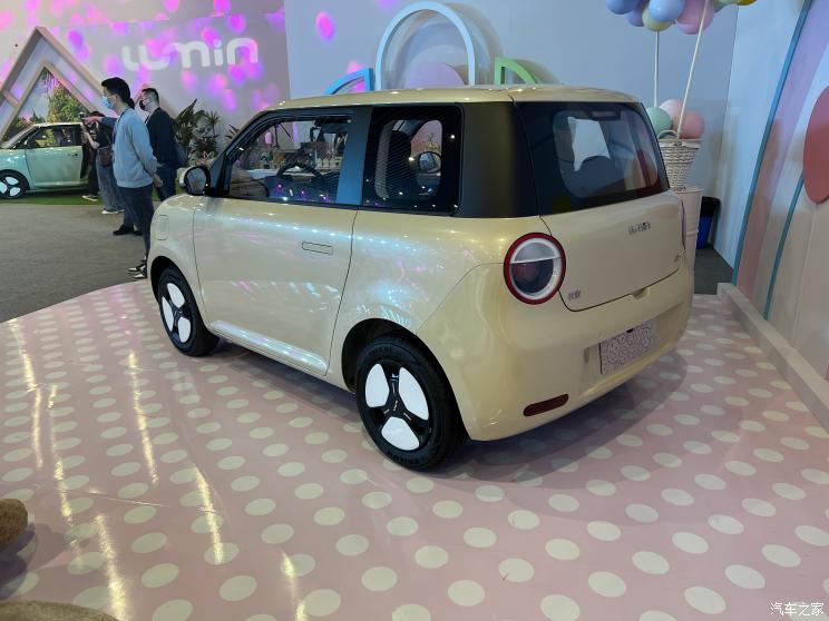 新车侧面造型简洁,门把手采用了隐藏式设计,前翼子板处为慢充接口。车身尺寸方面,新车长宽高分别为3270/1700/1545mm,轴距为1980mm。至于车尾,尾灯设计与前大灯相呼应,十分Q萌、提升车辆辨识度。