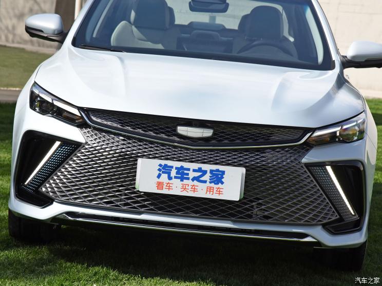 新车整体沿用现款帝豪L的设计风格,并在细节进行调整,整体看上去更具辨识度。具体来看,新车采用大尺寸前格栅设计,并在两侧进气口加入彩色点阵式元素进行装点,搭配两侧凌厉狭长的大灯组,让新车看上去十分时尚。同时,全新的数字流光车标也让新车看上去更具科技感。