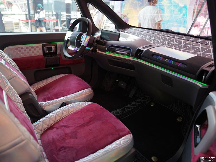 [本站 资讯] 2022年5月20日,宝骏KiWi EV来电概念款正式发布,概念款车型在KiWi EV造型设计的基础上,全车采用了粉紫色镭射装饰,并在车侧和副驾驶前方布置LED灯牌,此外车辆内部车顶还采用心形装饰,外观极具个性。