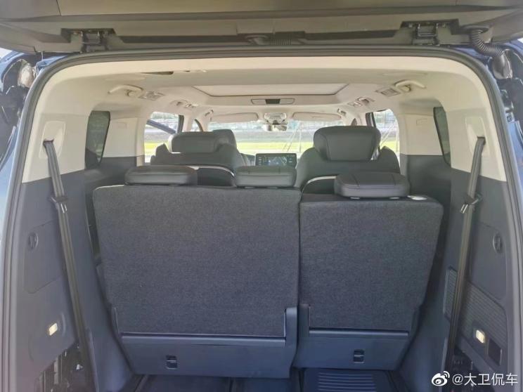 侧面来看,新车侧面腰线复杂,预计拥有丰富的光影视觉效果。此外,该车侧面呈现出前高后低的走势,车顶与尾窗的衔接过渡较为流畅,看上去十分协调。而双侧滑门的采用,也方便车内乘客上下车。尾部方面,新车采用了当下流行的贯穿式尾灯组,并在边缘加入镀铬饰条进行点缀,增加层次感以及时尚感。同时,新车右下角标有“HM9”字样,预计是该车的未来定名。