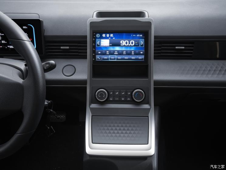 新车内饰采用了类似乘用车的环抱式座舱设计,配备有平底式方向盘、全液晶仪表以及中控大屏等等。此外,车内采用单排双座布局,并提供旋钮式挡把造型。
