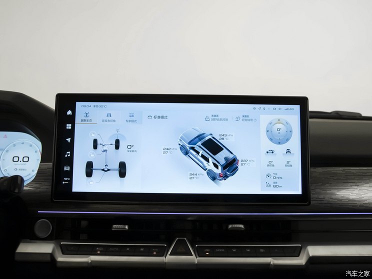 该车搭载了全新一代智能四驱系统,带Mlock机械锁止功能,可实现两驱(2H)、智能四驱(AWD)、高速四驱(4H)、低速四驱(4L)模式的切换,根据实际行驶的不同场景实现四种驱动模式的自由切换,满足更多越野极限工况的严苛需求。