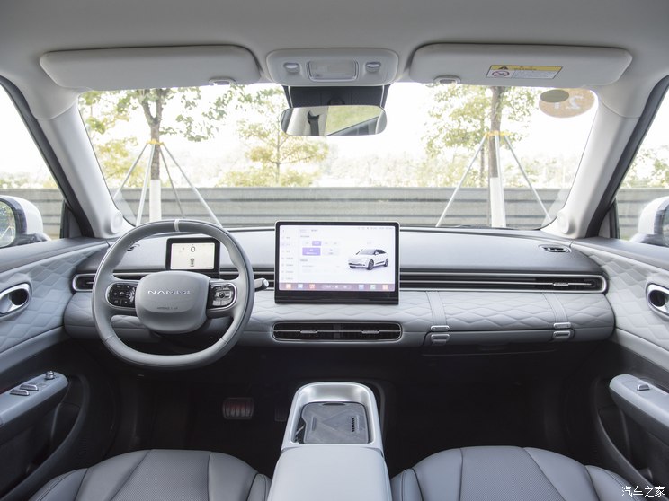 内饰方面,整体风格比较简洁,新车配备5英寸液晶仪表盘和12.8英寸悬浮式中控屏,拥有手机互联、App远程控制、540度环视功能。车内配备大量的菱形缝线,提升了内饰质感。该车搭载双辐式方向盘,配备多功能按键。该车配备智能座舱功能,可以使用语音指令控制汽车。另外,车内座椅可以“一键躺平”,将车内座椅变成一张“双人床”。此外该车还采用了无框式车门,手套箱推拉式的抽屉也比较有意思。