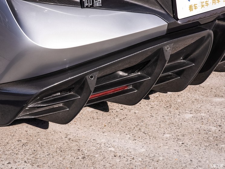 来到车尾,仰望U9配备大尺寸碳纤维固定式扰流板,其采用鹅颈式设计,支架固定在扰流板上端。后包围拥有十分夸张的扩散器设计,同时它还拥有横向的主动式扰流板,收起后可以提升后轴下压力,打开后可以减小风阻。新车外观有三种配色。