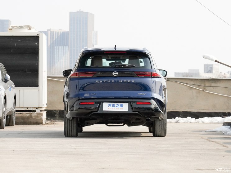 车身尾部造型比较方正,黑色饰条连接了两侧狭长立体的尾灯组,中间镶嵌东风日产LOGO,下面还有“Pathfinder”车型标识,采用隐藏式排气,车尾造型效果更加简洁。
