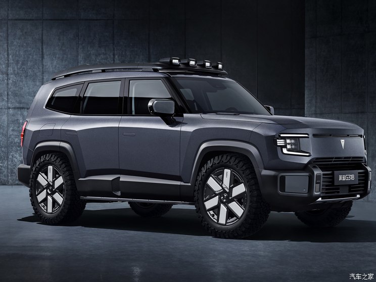 外观方面,该车拥有方正的轮廓,清晰立体的线条造型,营造出典型的硬朗形象。具体来看,深蓝G318非常强调金属多边形的切削,整体设计上呈现出与传统硬派车型完全不同的科技硬派观感。同时,造型别致的大灯组,配备中央封闭式前格栅,让这款车看上去十分科幻且时尚。此外,其下包围处疑似拥有充满野性的护板设计。