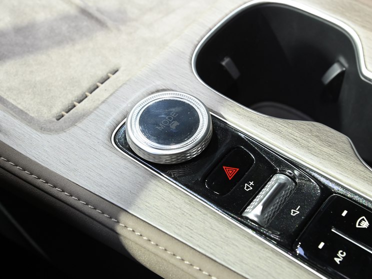 车内的设计更接近新能源车型的风格,再加上米色的内饰,看上去十分简洁。它配备有液晶仪表和独立的中控大屏,我们还可以看到带出风口的无线充电面板以及模式转换旋钮等。