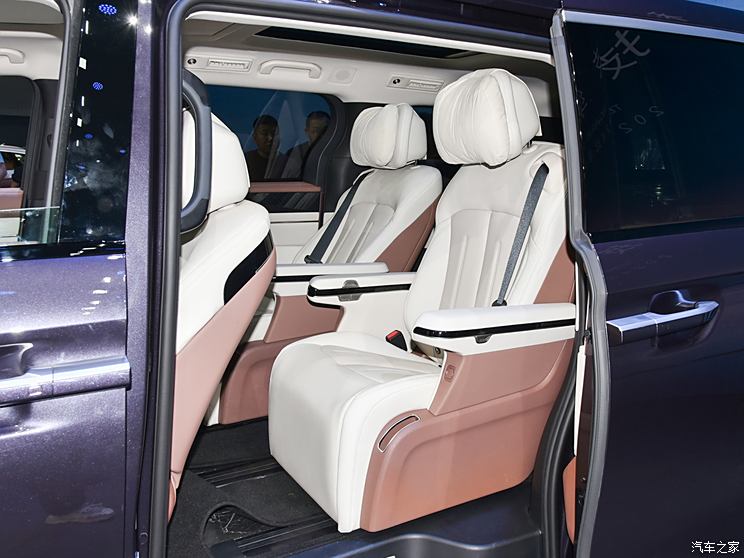 座椅方面,二排Nappa真皮超柔云感座椅拥有电动调节、座椅通风、加热以及按摩功能,同时还有小桌板、空调以及娱乐系统调节等等。第三排座椅同样配备了三个舒适头枕,可支持一键电动折叠。
