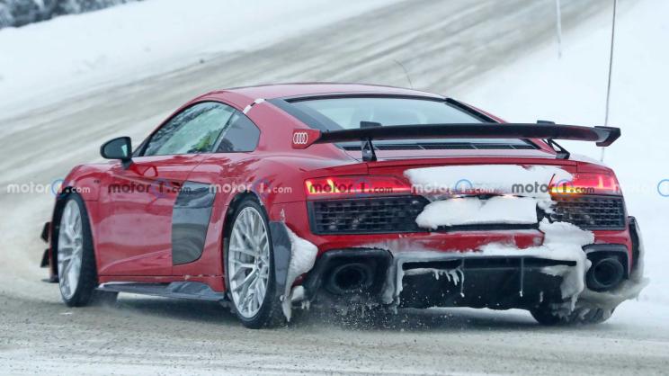 [本站 海外谍照] 近日,我们从海外媒体获得了一组奥迪R8最终版车型的冬季测试无伪谍照。新车外观增加了全新的空气动力学套件,动力上预计将会采用V10发动机+后轮驱动。据悉,新车或重新启用“R8 GT”的命名,最终版车型预计将在2022年秋天发布。