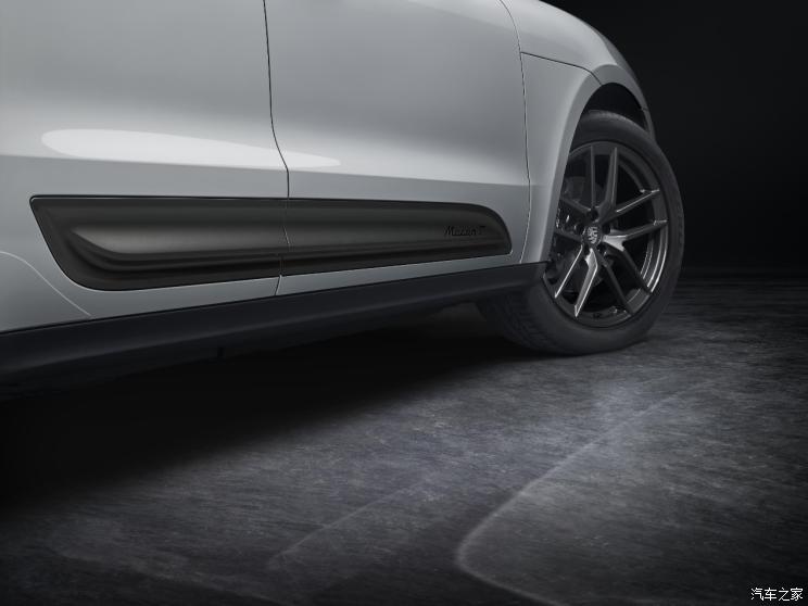 Macan T的前部、侧面和后部以玛瑙灰金属漆色元素点缀,这是区别于其他 Macan车型的专属设计。在前端饰件、外后视镜、侧翼板、车顶扰流板和车尾标记上均可发现这种独特的对比色。黑色(高光)的运动型尾管和侧窗饰件为标配,侧翼板上带有黑色“ Macan T” 标志装饰。20 英寸 Macan S 车轮为标配,采用独特的深钛色涂漆。消费者可以从 13 种纯色、金属漆色和特殊颜色中挑选车身外观颜色。