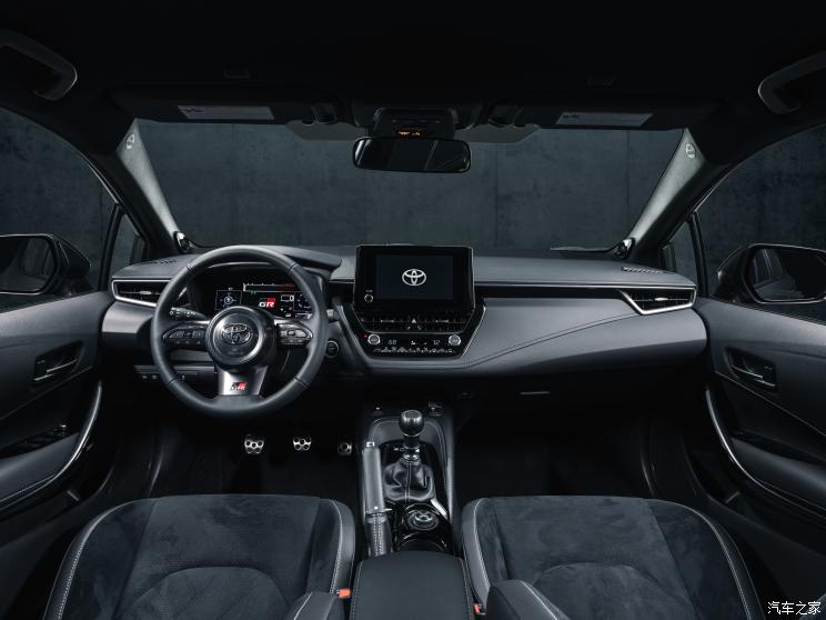 内饰方面,新车整体与卡罗拉(海外车型)一致,通过纯黑配色,加上桶形座椅以及GR方向盘等升级提升了车内的运动感。其座椅采用真皮+Alcantara+织布拼接,还配备了前排座椅加热功能。另外还换装了全液晶仪表,各种动力信息显示十分全面,另外还配备自适应巡航和车道保持功能也可满足日常通勤需求。