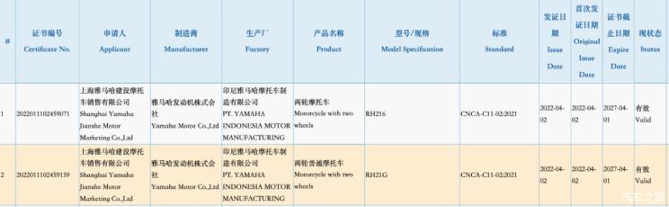[本站 资讯] 日前我们获悉,雅马哈近期申报了两款新车的3C认证,型号分别为“RH216”、“RH21G”,两款车型均为在印尼生产的进口车型,可以看到,两款车型的申报名称不同,这或许意味着,新车将会推出两种不同配置的版本。