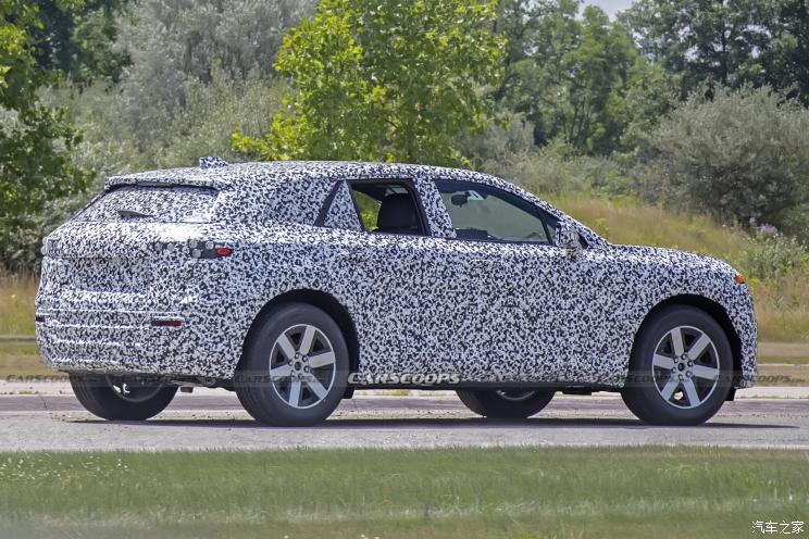 来到侧面,新车轮廓与雪佛兰Blazer EV几乎一致,尤其是在C柱的三角窗设计几乎如出一辙。另外,新车也保留了短前、后悬的设计,只是侧面线条看上去更加简单直接一些。