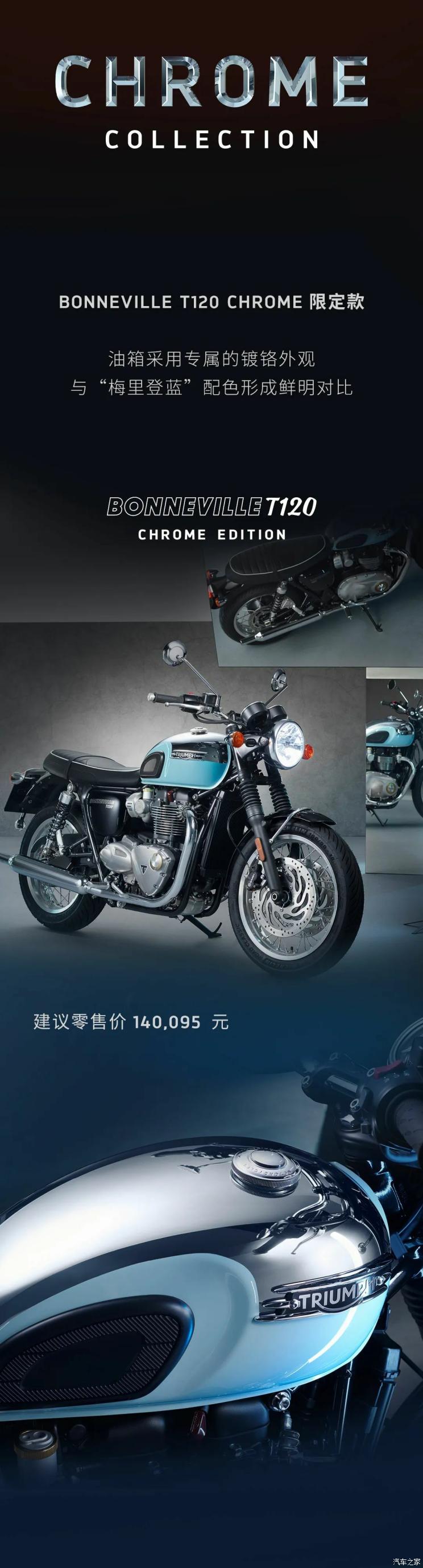 [本站 资讯] 日前我们获悉,凯旋一口气推出了多达十款限定版摩托车,全新限定款名为“CHROME”系列,并分别公布了价格,值得一提的是,这些车型不仅是限定版,更是限时版――仅发售一年。