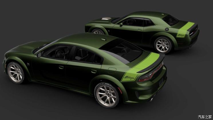 Charger Scat Pack Swinger车型作为推出的第四款产品,该车同样限量1000台。新车配备Scat Pack宽体套件,并拥有20英寸轮圈,在前、后翼子板、后备厢以及格栅等处也不乏专属LOGO来表明其身份。值得一提的是,新车内饰也将采用绿色装饰,与外观形成统一。动力上,Charger特别版车型仅提供8速自动变速箱。
