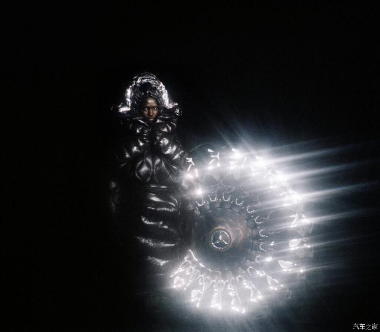 奔驰官网发布了这款概念车的预告图,一台奔驰G级两侧和上部被时尚的充气装饰包裹,而它的车轮也同样是由这种充气装饰打造,它似乎是一种如镜面版的材质,在灯光下,会产生晶莹剔透的效果。