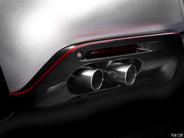 车尾的部分宽大的车身依旧有着饱满的视觉效果,红色的拉花也会更加吸引你的注意力。虽然它是一台前置后驱跑车,但在车位也布置了一块尺寸很大的玻璃,可以让你有更多的幻想。宽大的尾部扩散器以及双边共四出的排气也是性能跑车的标准配备,也可以和分体式尾灯做个很好的呼应。