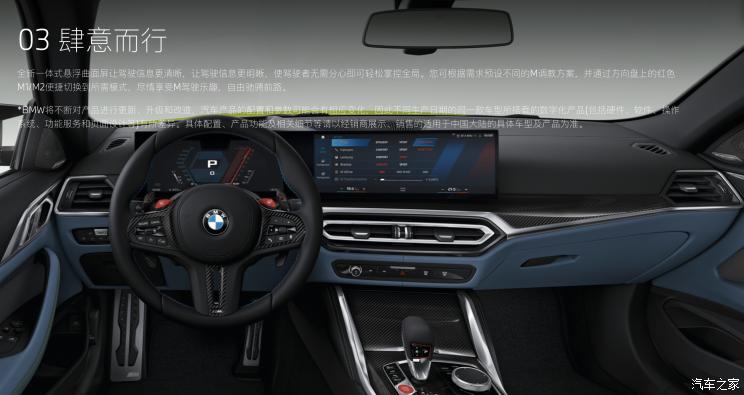 [本站 新车上市]日前,我们从宝马官网获悉,新款宝马M4正式上市,新车共推出4款车型,售价区间依旧为89.39-105.68万元,与老款车型保持一致。作为年度改款,新车最主要升级是换装了12.3英寸+14.9英寸曲面屏以及iDrive 8操作系统等。