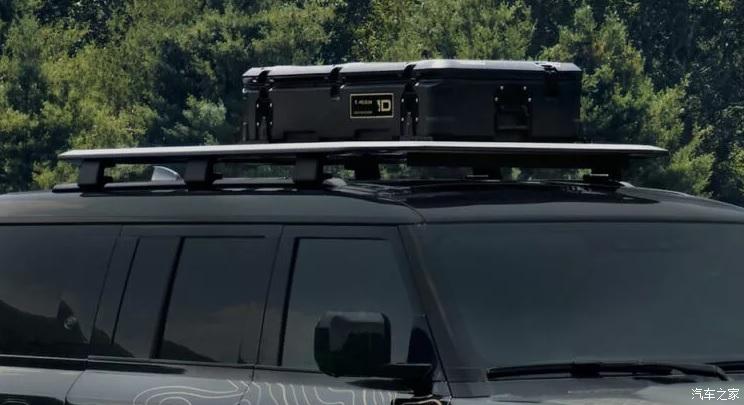 该车还配备了带折叠梯子的车顶行李架,并搭配专属Pelican车顶箱,能够进一步扩大储物空间,携带更多的露营或越野装备。此外,该车还配备了绞盘和拖车钩,能够提升极限路况下的脱困能力。