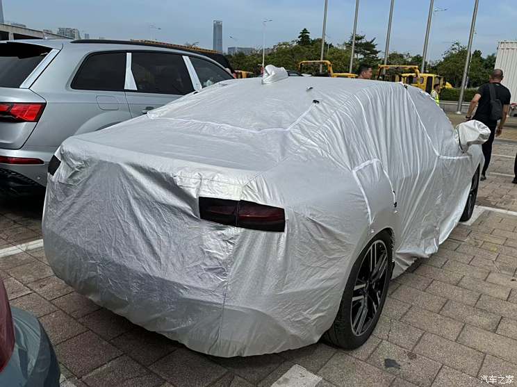 根据现场图片来看,新车覆盖着车衣,为广州车展的亮相保留一些神秘感。但可以加看出新车的大嘴式前格栅以及突出的四环奥迪LOGO,两侧的大灯组造型轮廓也若隐若现。