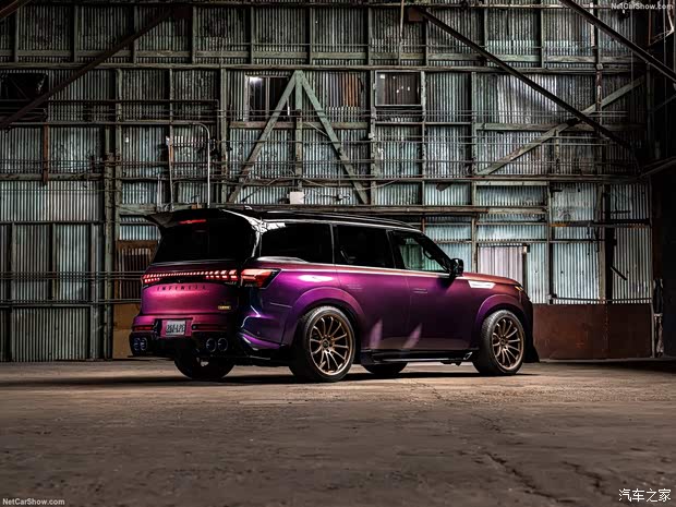 来看官图,新车在外观方面采用Midnight Purple(午夜紫)渐变色车漆进行涂装,该车漆也曾在R34、R35车型上使用。QX80 R-Spec概念车还使用了宽体套件以及更多的空气动力学设计,另外还换装短簧减振器打造出低趴效果。